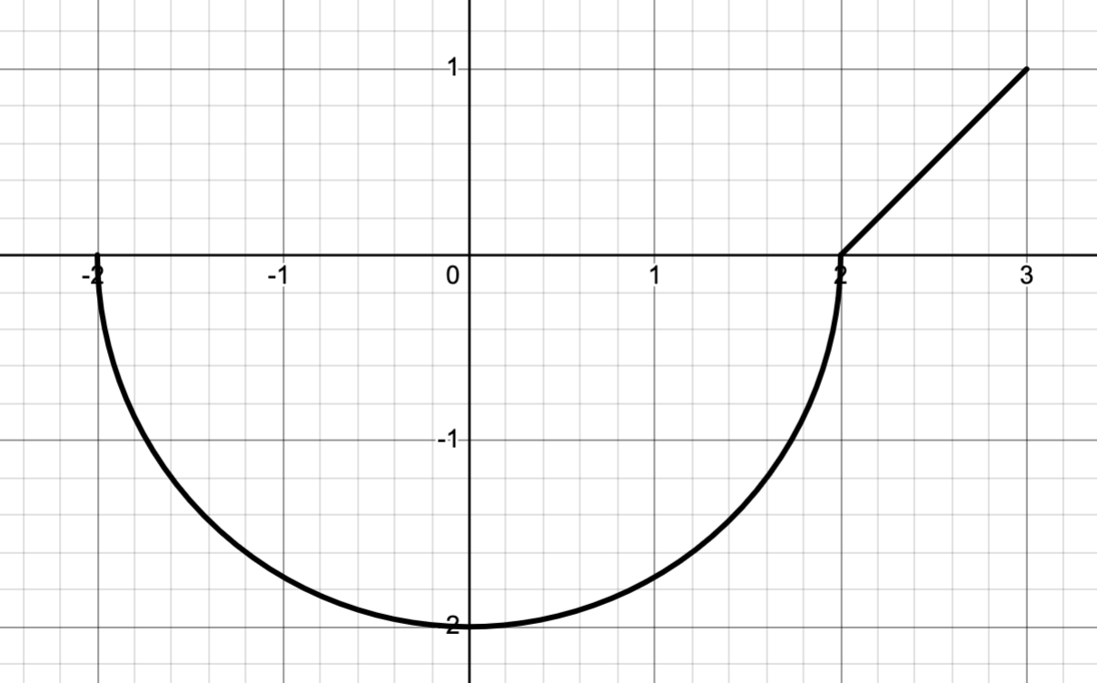 The complete graph of a function \(f\) is shown in Figure 6; it consists of a semi-circle and a straight line segment. Evaluate