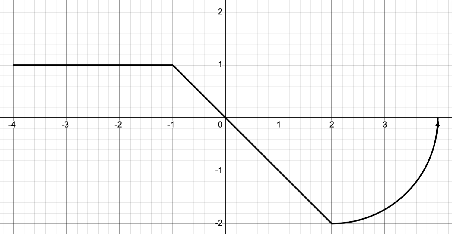 The complete graph of a function \(f\) is shown in Figure 4. Evaluate \[ \int_{-4}^4 f(x) \, dx. \]