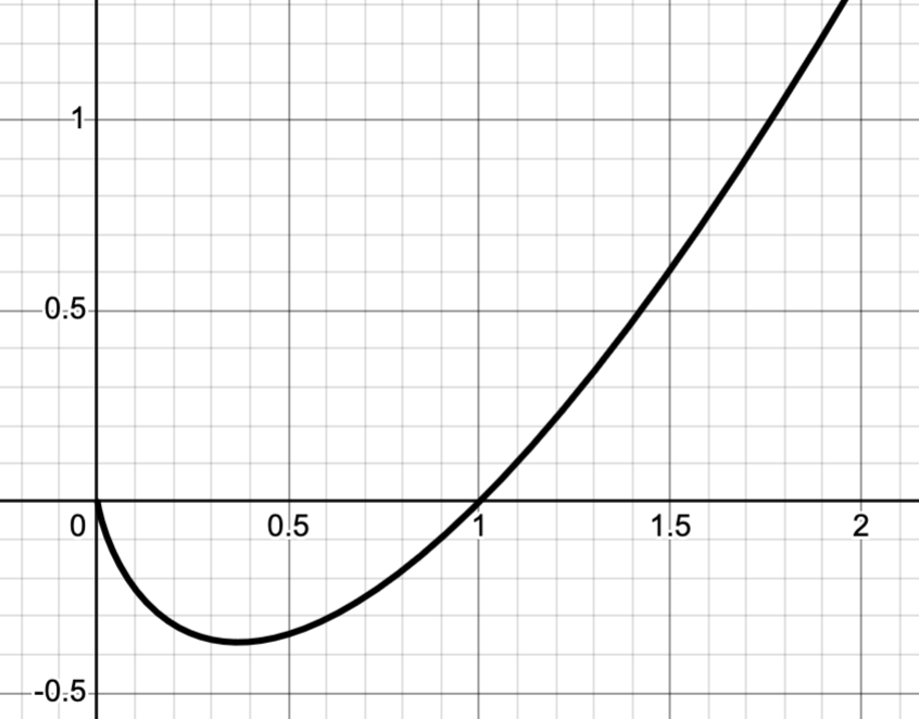 The graph of \(f(x) = x\ln(x)\) is shown in figure Figure 1. Find the exact location of the global minimum.