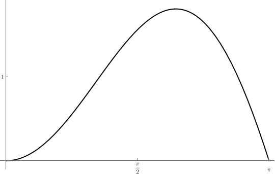 Suppose we want to find the maximum value of \(f(x)=x \sin(x)\) over the interval \([0,\pi]\). A glance at graph shows there’s exactly one.
