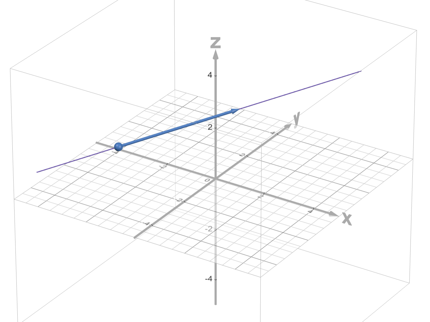 Figure 2 shows the line through the point \(P=(-2,-3,2)\) in the direction of the vector \(\vec{d}=\langle3,3,1\rangle\).