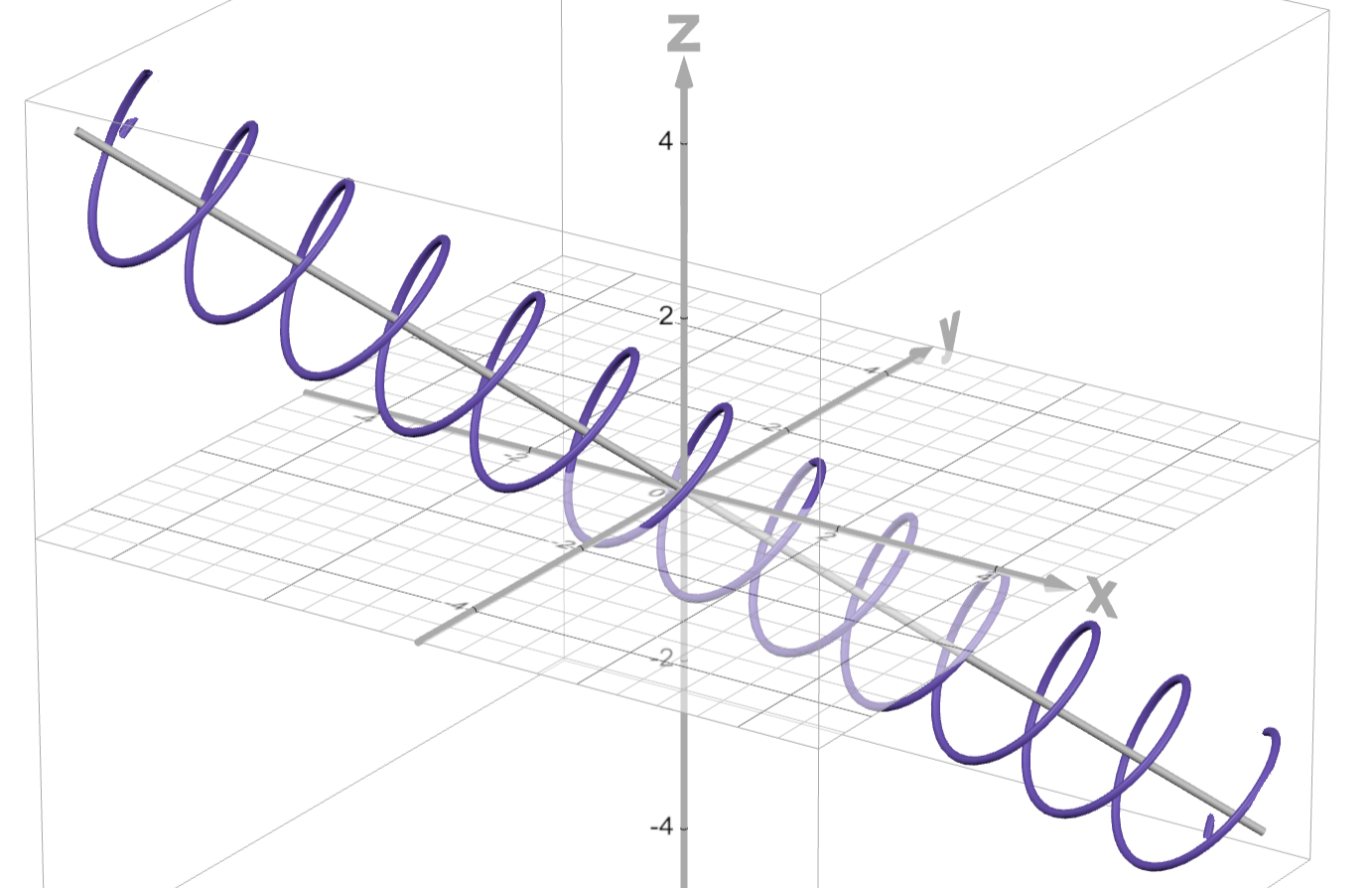 We just saw how a circle can be wrapped around a line and centered at a fixed point. If the center moves along the line with constant speed, the path is called a helix.