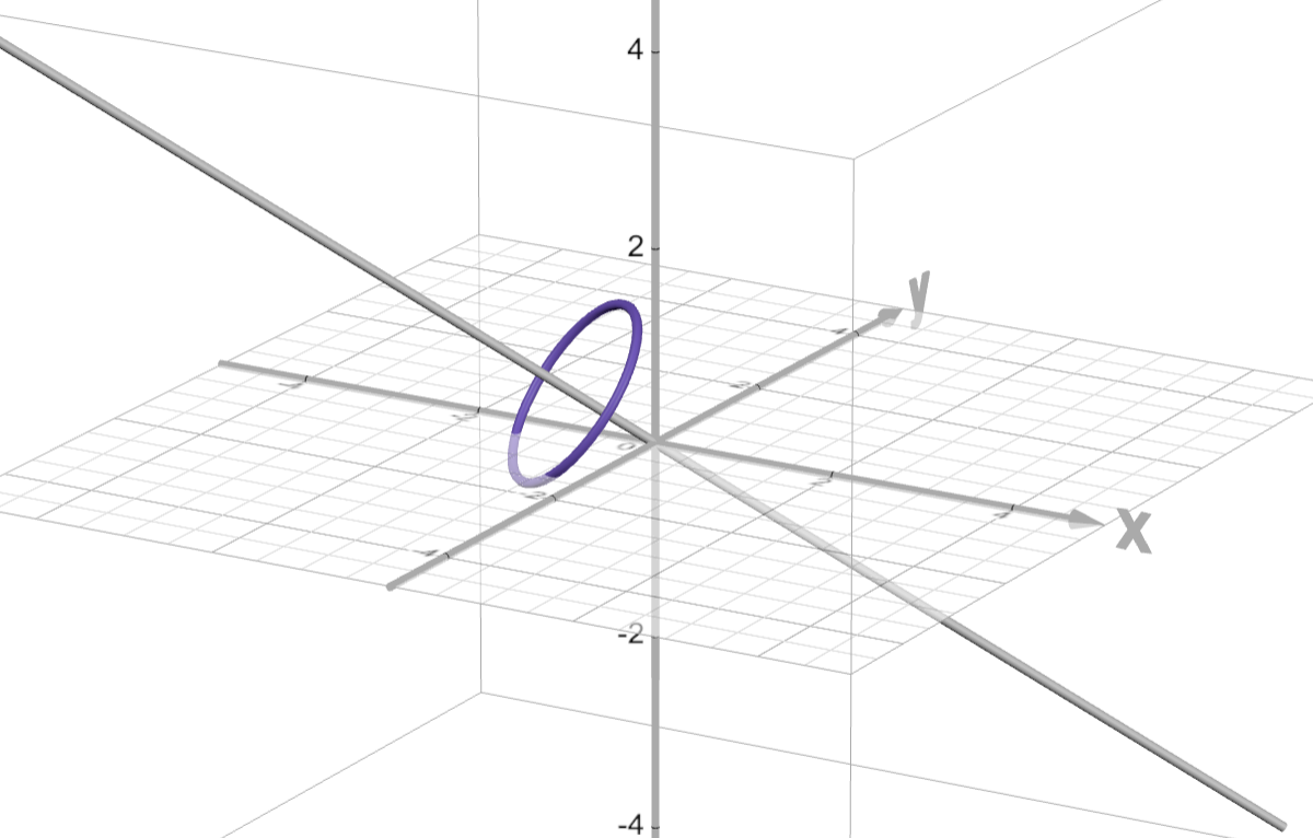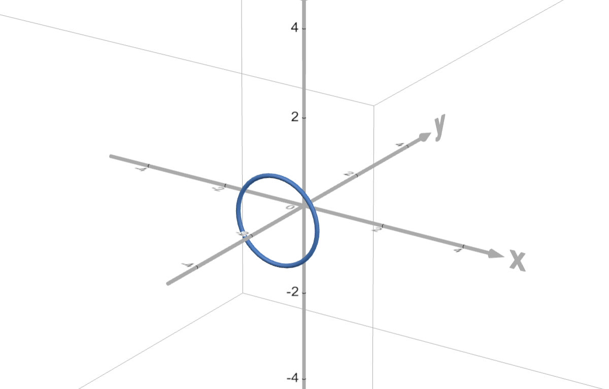 A circle that’s parallel to one of the coordinate planes is easy enough; just set one coordinate to zero. The result might look like so:
