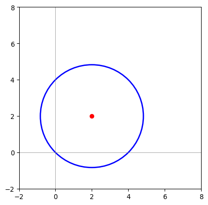 \[ \vec{p}(t) = C + r\langle\cos(t), \sin(t)\rangle. \]