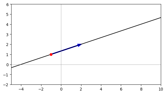 Figure 1 shows the line through the point \(P=(-1,1)\) in the direction of the vector \(\vec{d}=\langle3,1\rangle\).