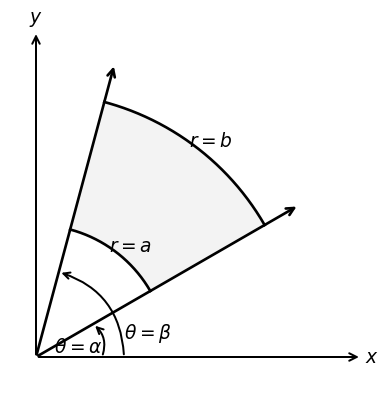 Works great with regions bound by circular arcs centered at the origin and rays emanating from the origin: