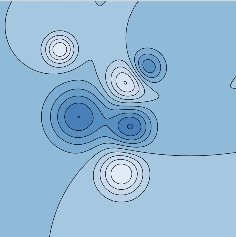 Figure 1 shows a contour plot. Identify any local maxima, minima or saddle points that you see on that figure.