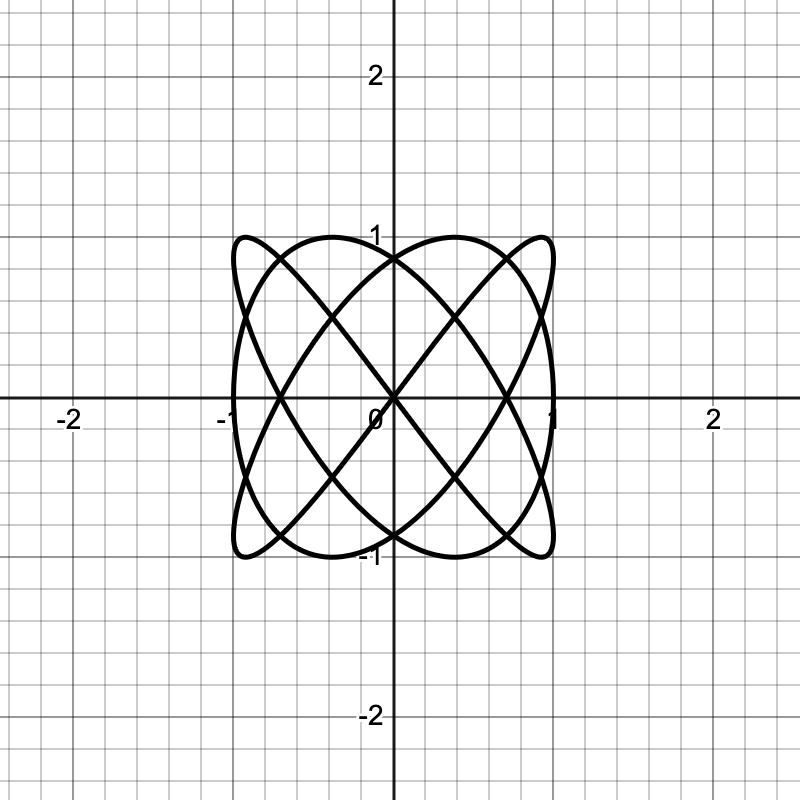 - \(\:\:\displaystyle \vec{p}(t) = \left\langle\cos\left(3t\right),\sin\left(4t\right)\right\rangle\)