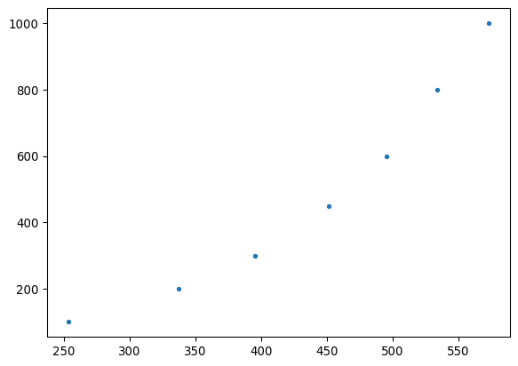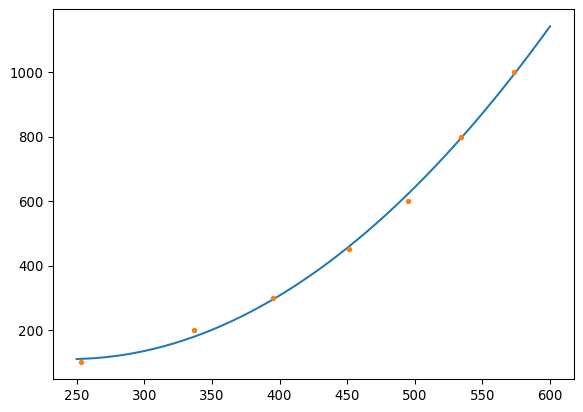 plt.plot(g_data.D,g_data.H, '.')f(x) = 0.00818 x^2 - 4.00484 x + 600.05
