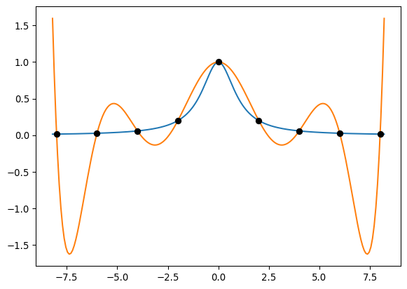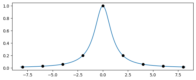 Here’s some data generated by the function \[ f(x) = \frac{1}{1+x^2}. \]