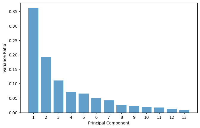 Here are the proportions of variance for each of the 13 principal components.